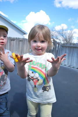 It has been warm enough we decided to put our trampoline up. The kids had to get on it, of course. The trampoline made them totally black. They looked so funny it was all over there clothes and faces. Jaelee had streak marks from her hair getting in her mouth and brushing it away. Jayse just had it all over his face because he was crying and then wiping his face.
